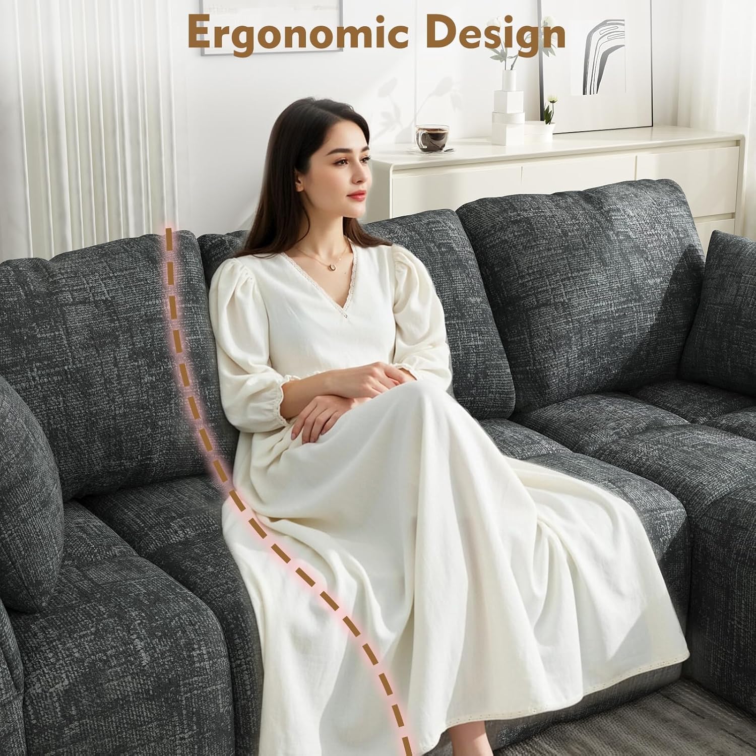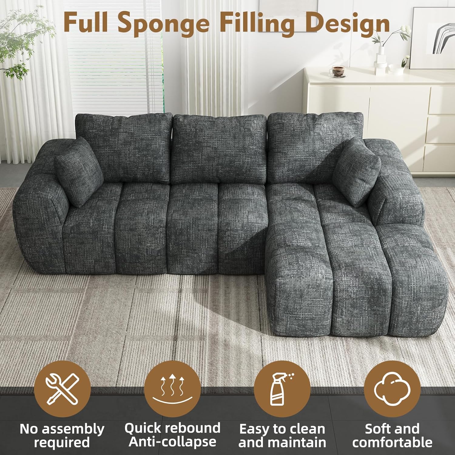 🌃Comfortable Chaise Design: Experience exceptional comfort with our spacious sofa, featuring a 40" seat depth. The chaise lounge is perfect for relaxing, designed with high-resilience foam for superior support and long-lasting durability, ensuring a luxurious seating experience