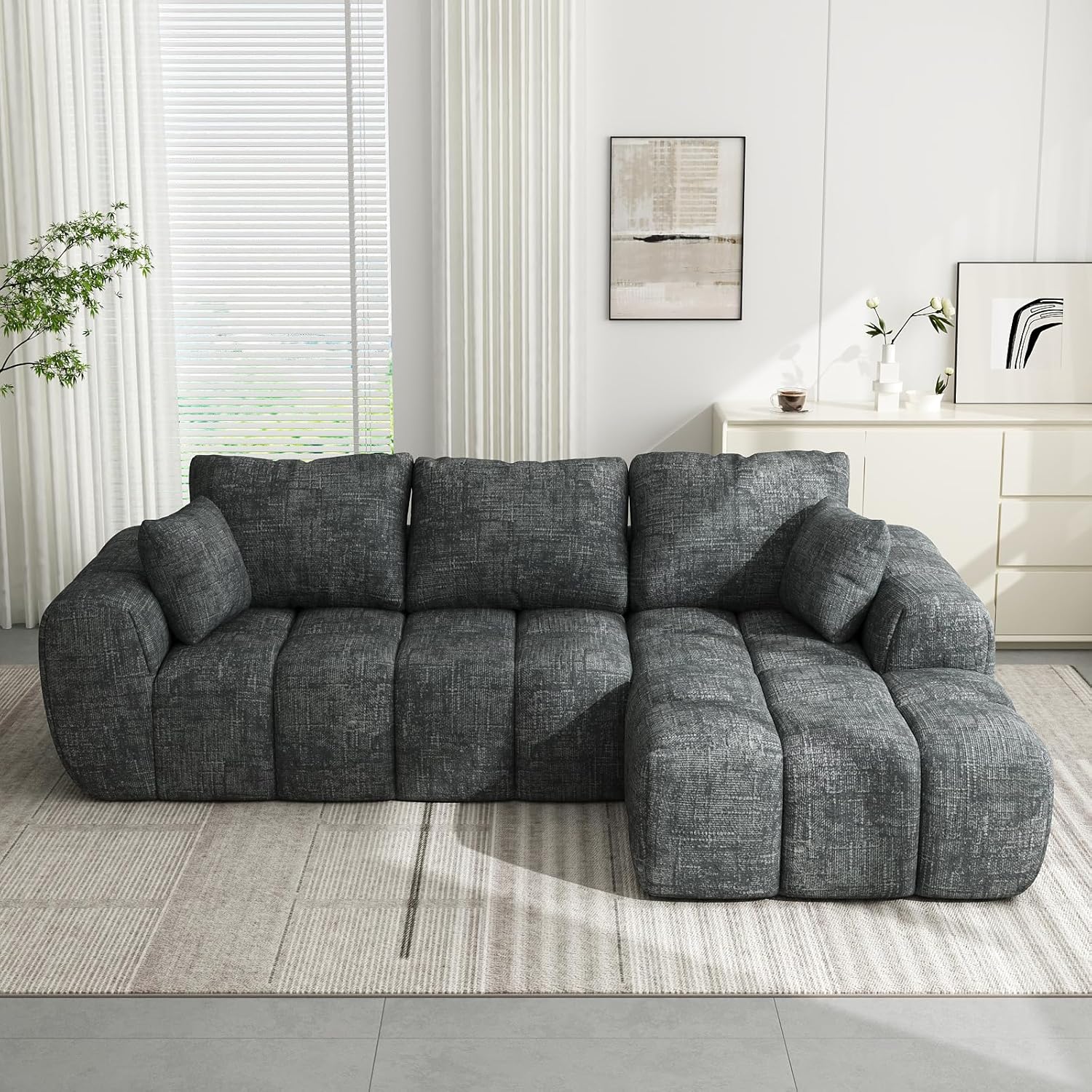 101” Modular Sectional Sofa, Cloud Sectional Couch with Deep Seat, Modern Modular L-Shape Sofa Couch with Chaise,Upholstered Boneless Couches for Living Room Bedroom(Deep Gray)