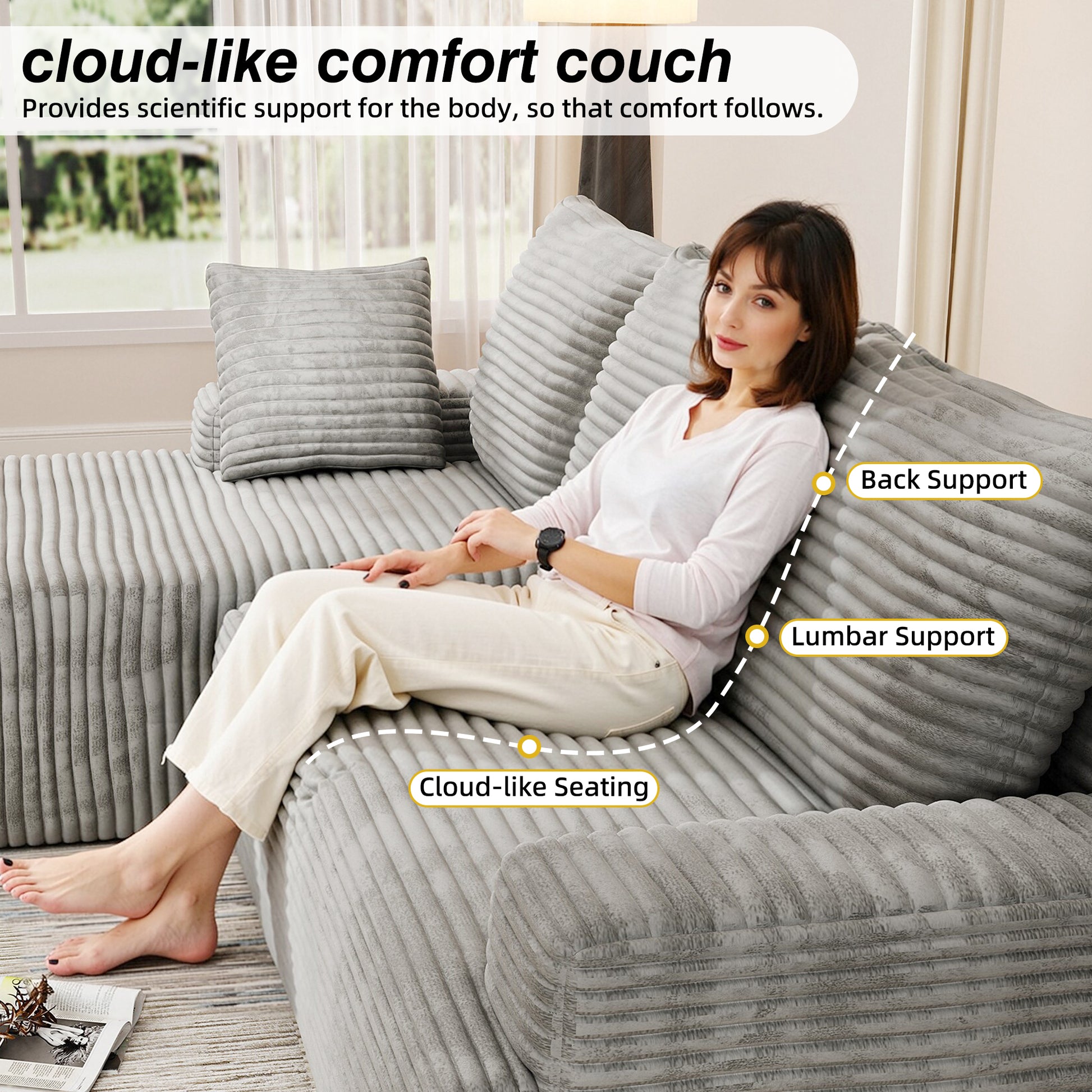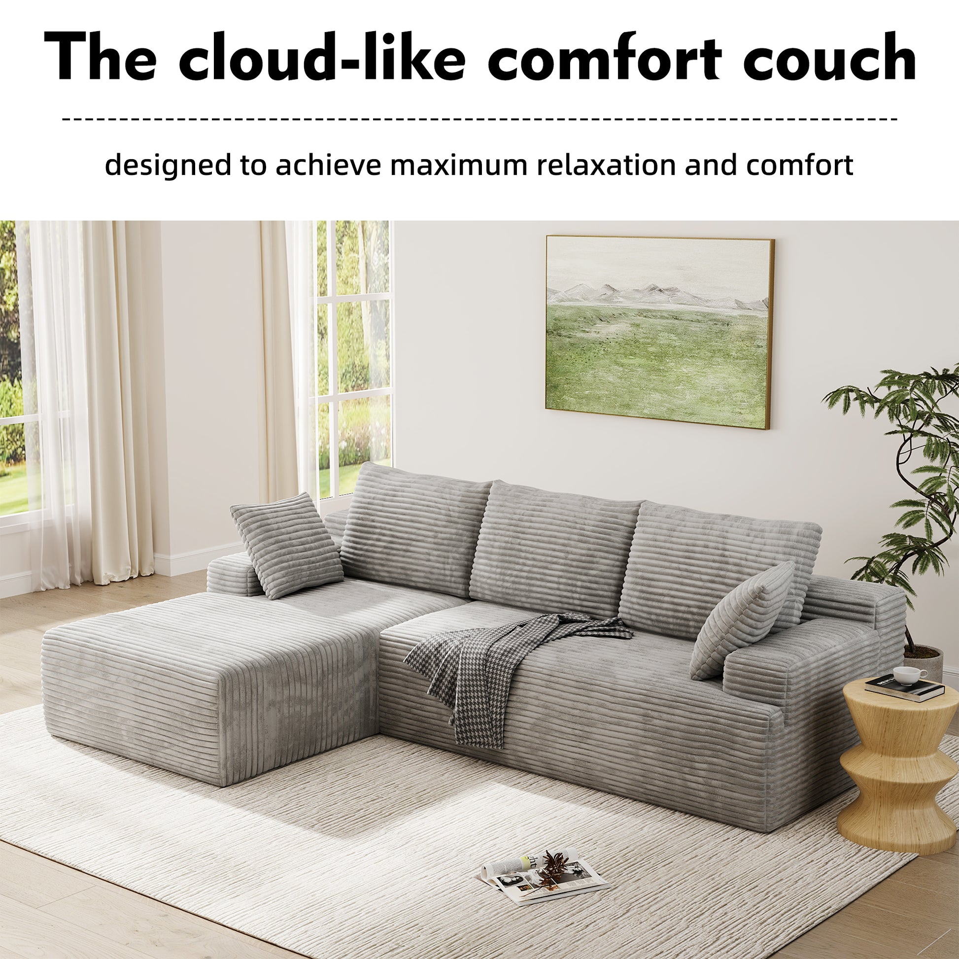 104" Modular L-Shaped Sectional Sofa, No Assembly Required Boneless Sofa with Chaise, High Resilience Foam & Corduroy Fabric, for Living Room Bedroom,(Oyster White)