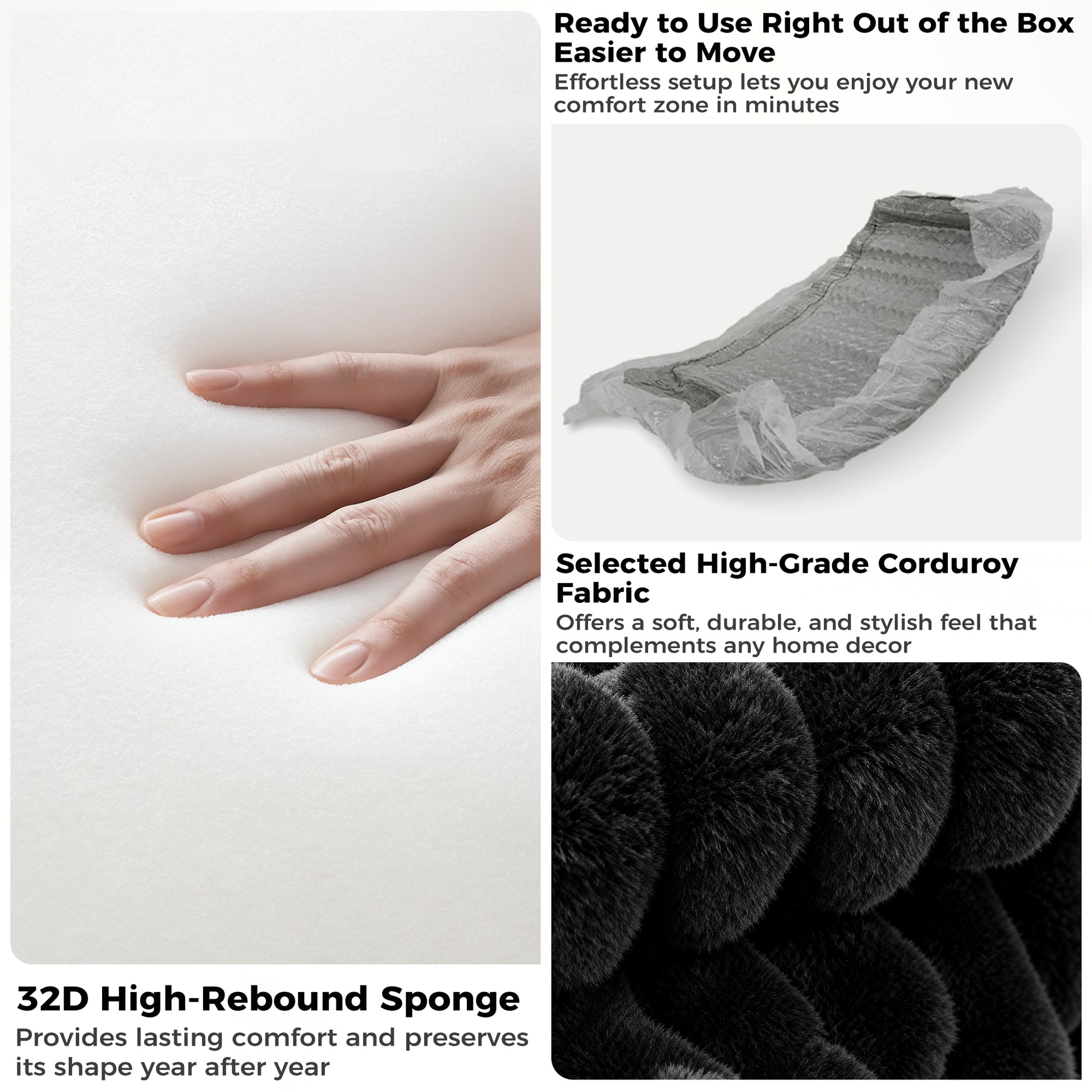 Customize your comfort! This set comes with 4 back cushions and 4 pillows—mix and match for your perfect seating setup.🧵 Soft Corduroy Fabric