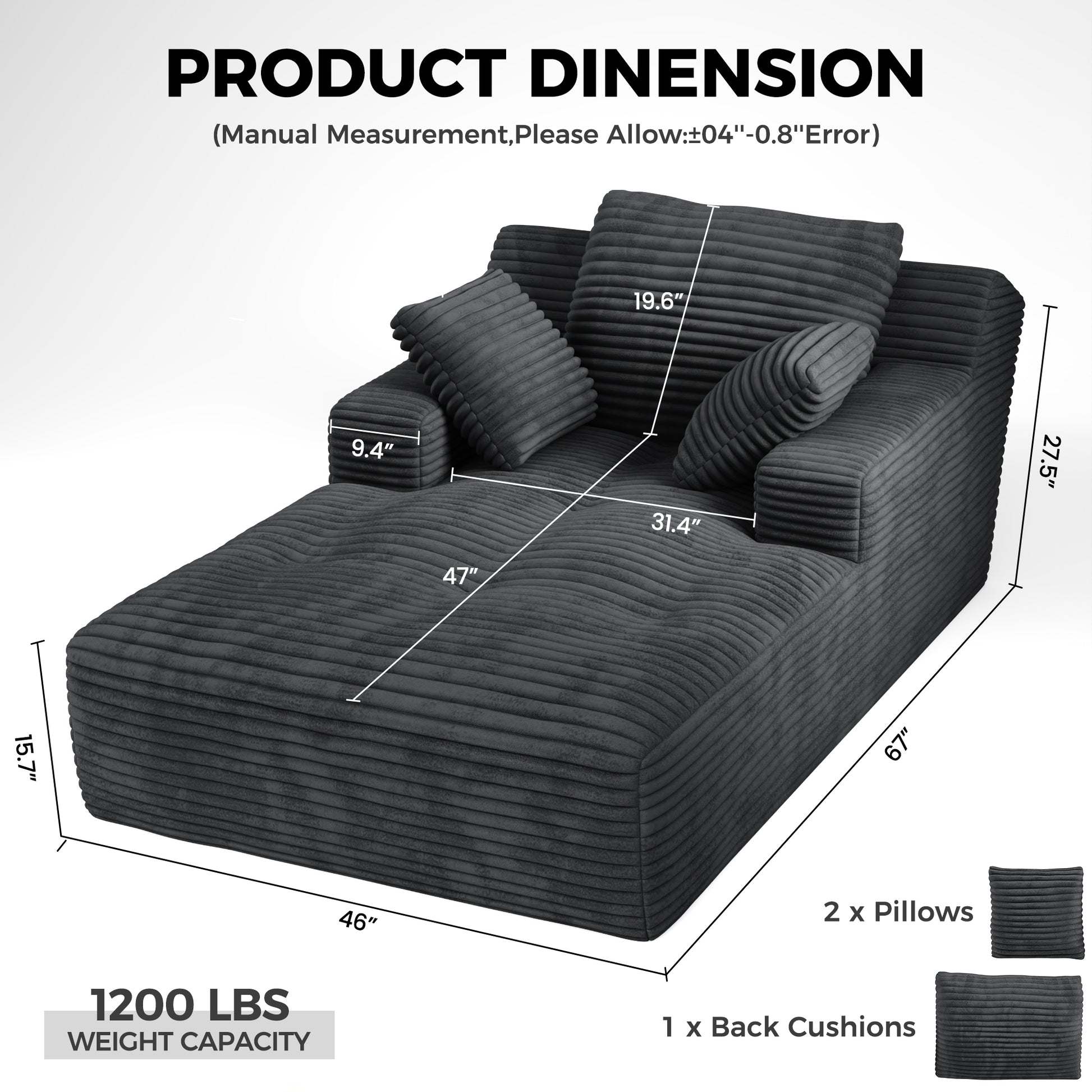 67'' Oversized Chaise Lounge Chair, Cloud Plush Corduroy Sofa Bed for Living Room, Modern Deep Seat Sleeper Couch with Back Cushion, No Assembly Required, (Charcoal)