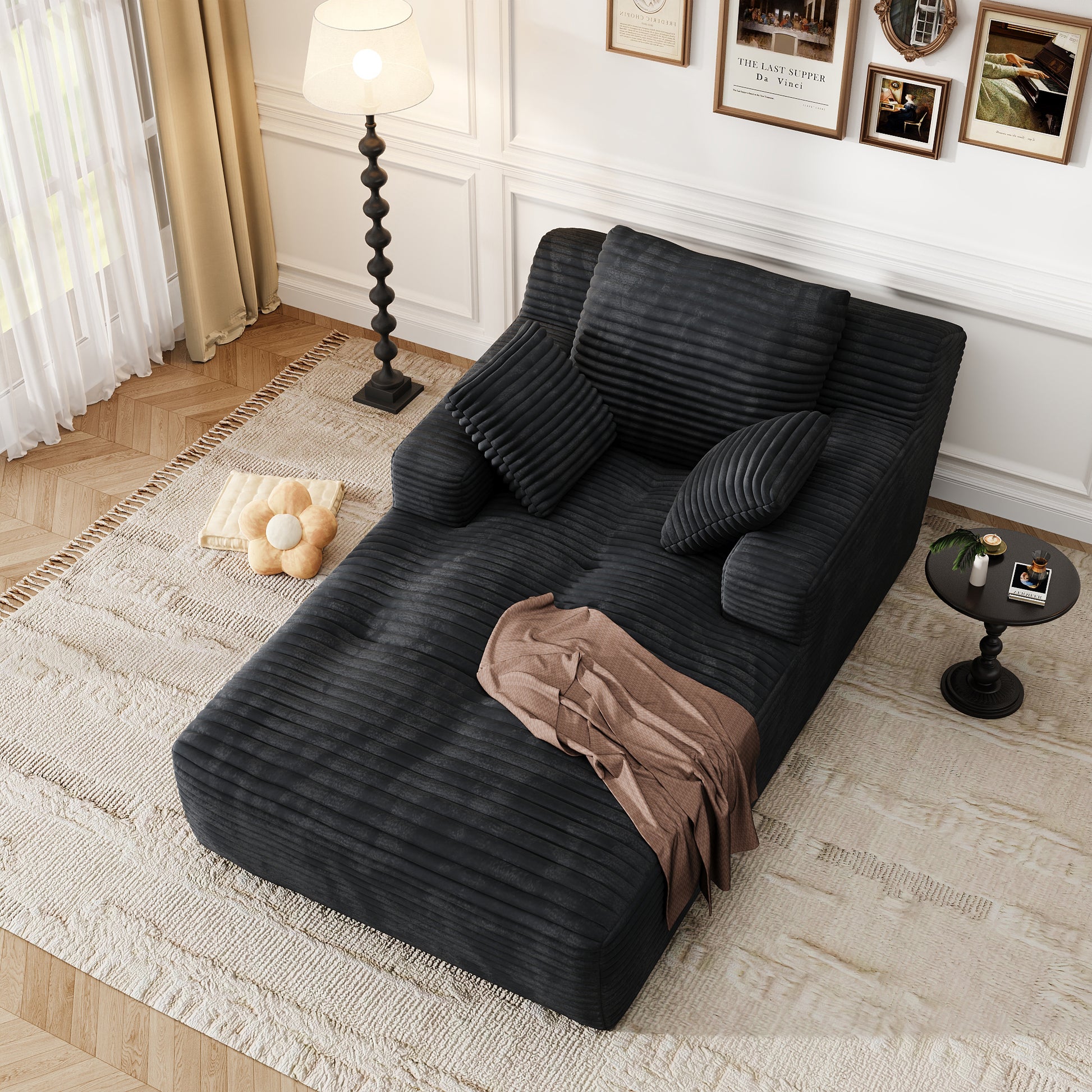 67'' Oversized Chaise Lounge Chair, Cloud Plush Corduroy Sofa Bed for Living Room, Modern Deep Seat Sleeper Couch with Back Cushion, No Assembly Required, (Deep Black)