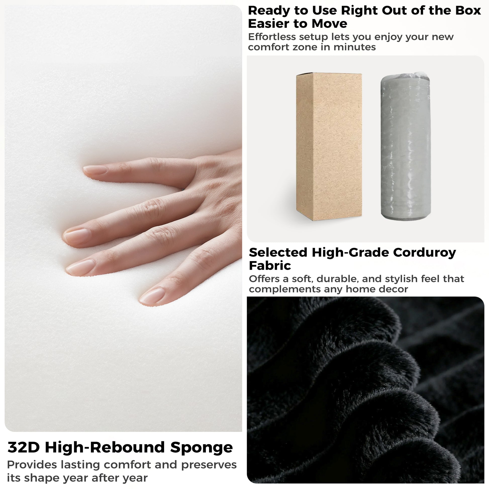 Engineered with high-density foam that keeps its shape and comfort year after year—Resists sagging, even with everyday use.☁️ Cloud-Like Comfort