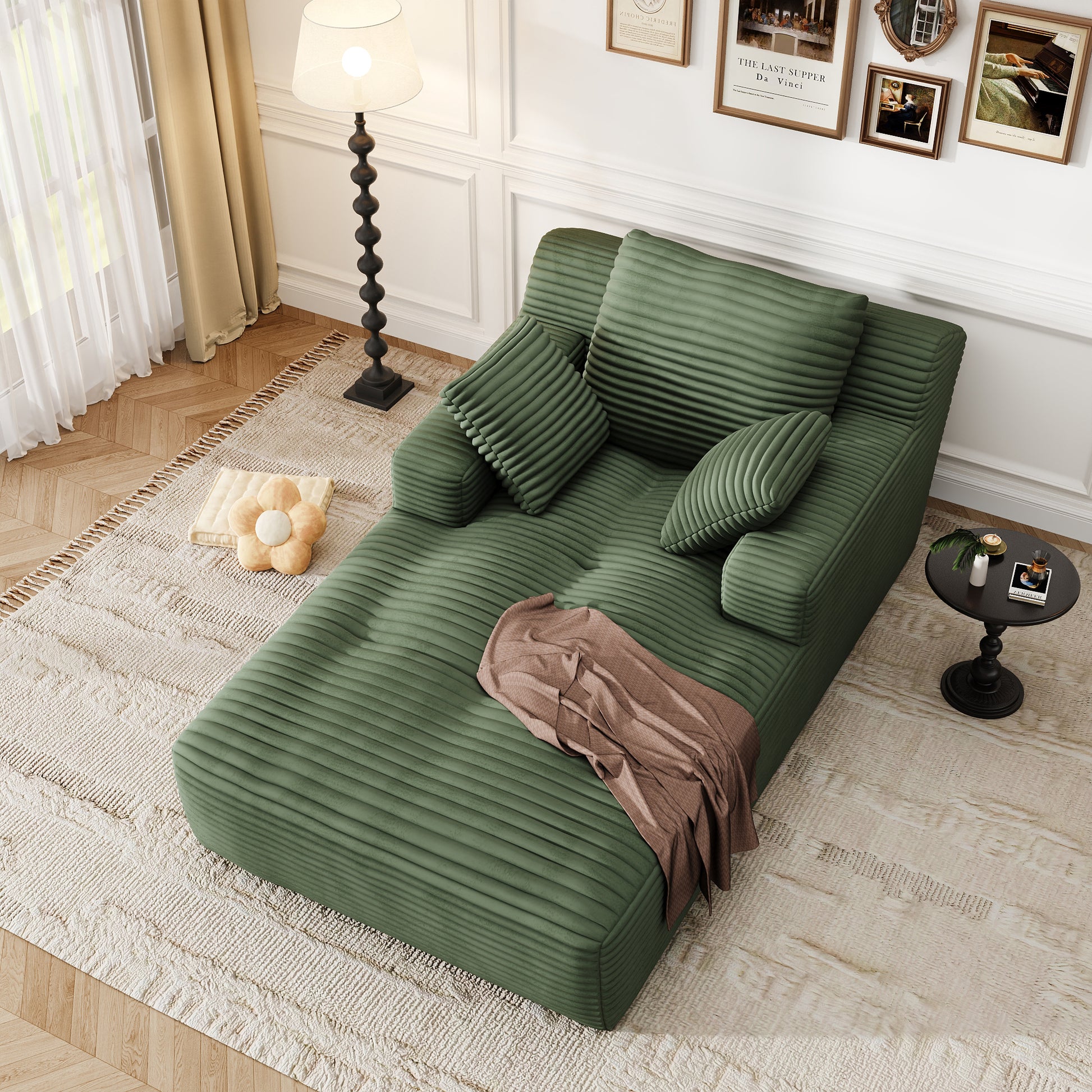 67'' Oversized Chaise Lounge Chair, Cloud Plush Corduroy Sofa Bed for Living Room, Modern Deep Seat Sleeper Couch with Back Cushion, No Assembly Required, (Sage Green)