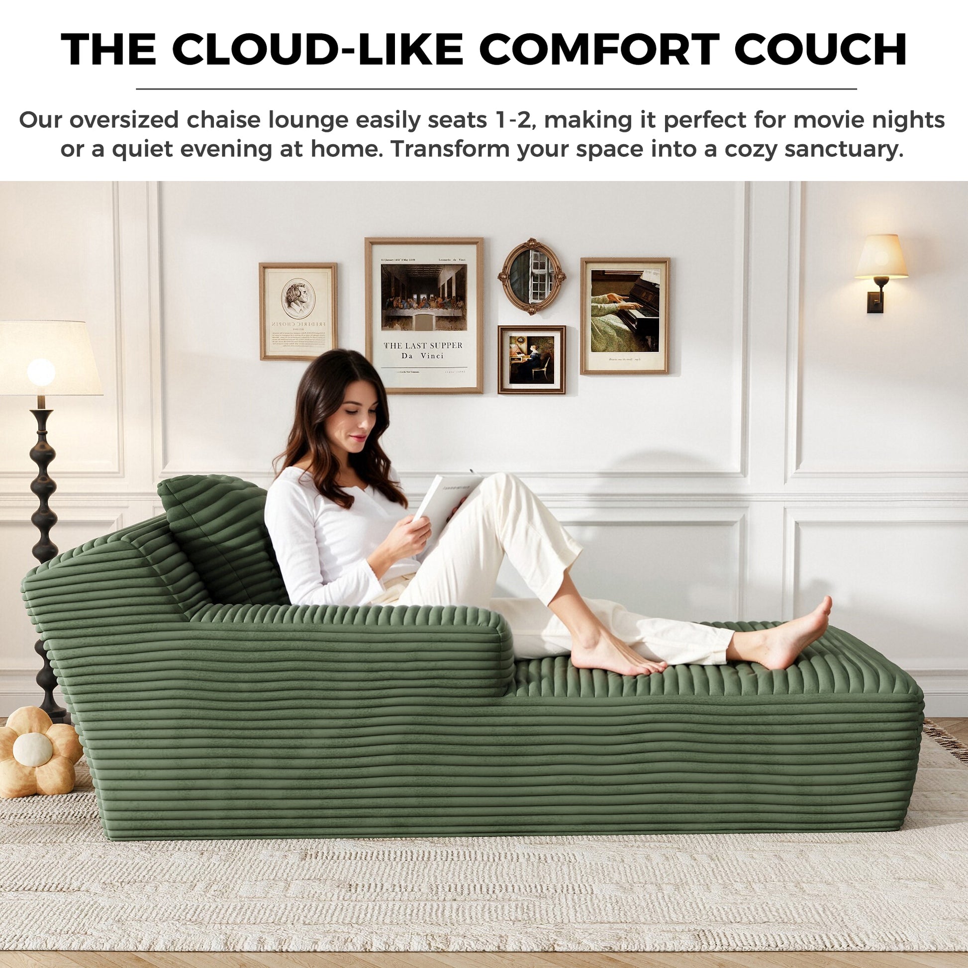 Embrace ultimate comfort with our 67" oversized chaise lounge chair. Upholstered in plush cloud corduroy and featuring high-density foam for superior support, it ensures long-lasting comfort and durability. This versatile sofa bed offers a spacious design for one or two people and requires no assembly—simply unbox and let it expand. With ample seating space, it's perfect for hosting movie nights, entertaining guests, reading, gaming, or simply enjoying a quiet evening at home. Transform your living room, bedroom, or playroom into a cozy sanctuary with this modern, multi-functional sleeper couch.