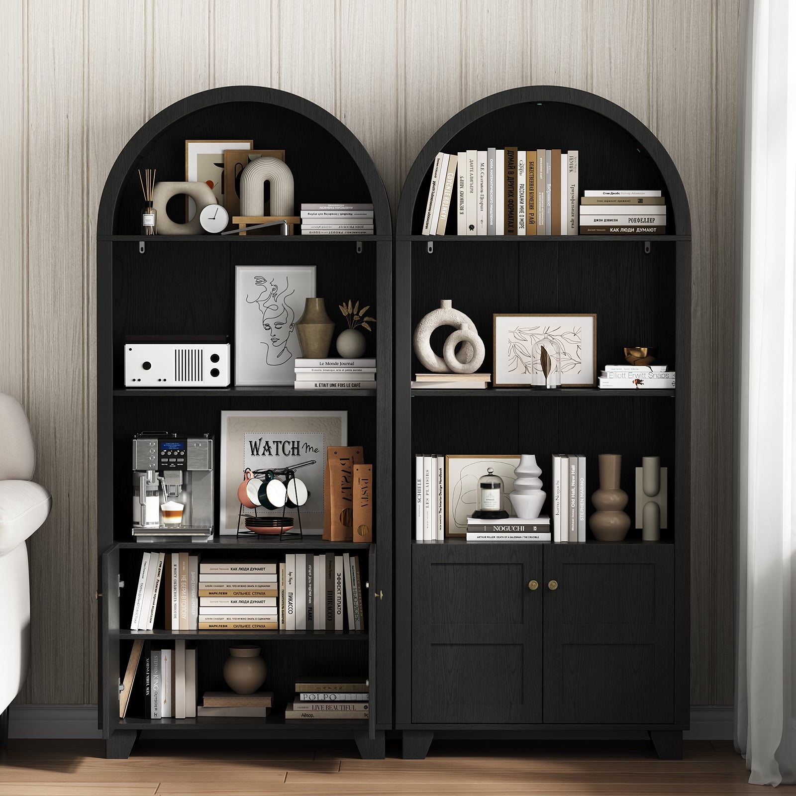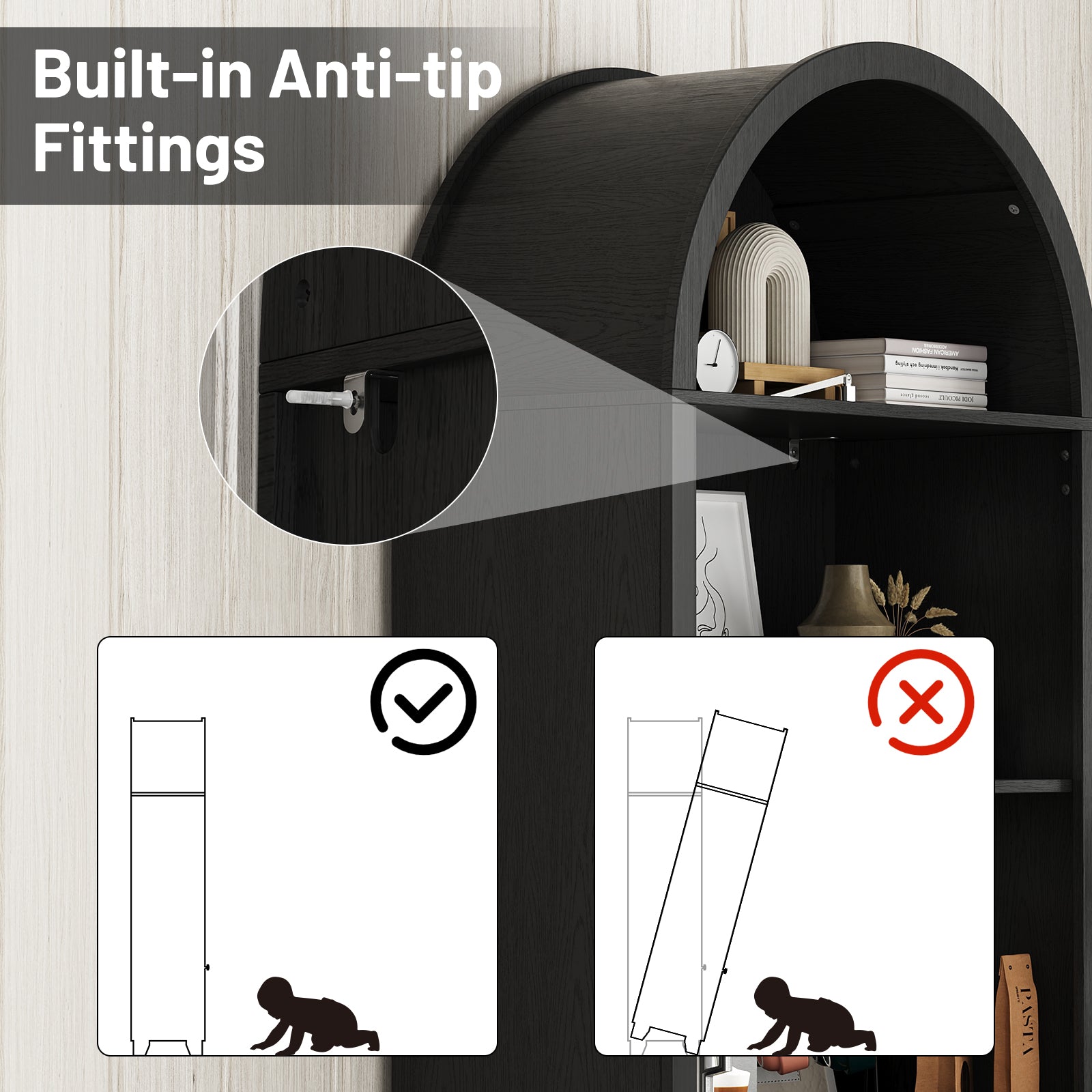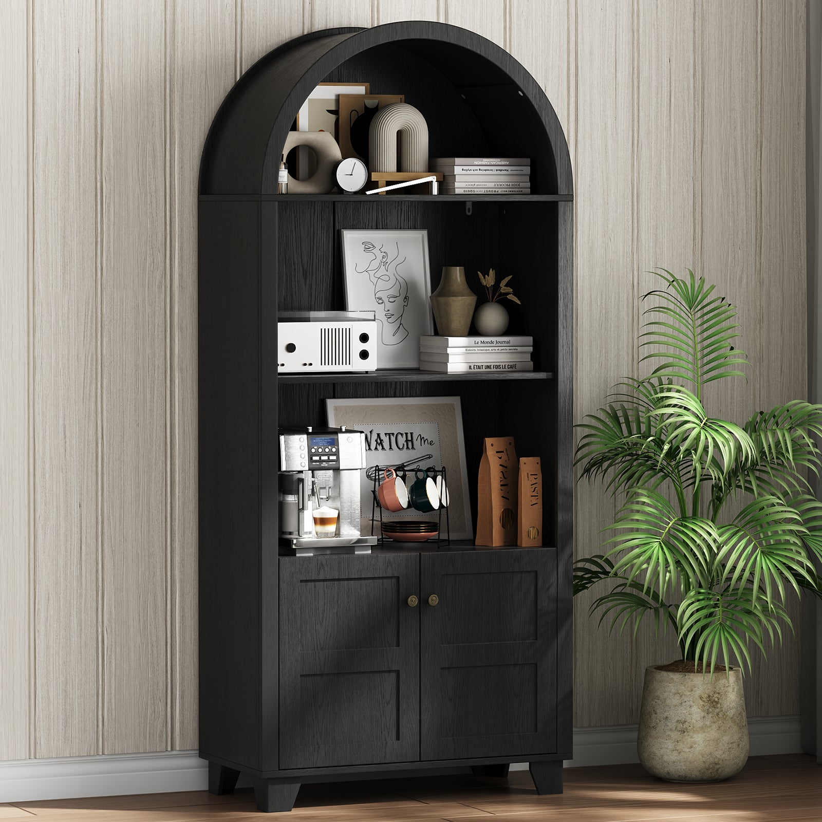 70'' Tall Arched Cabinet, Arched Kitchen Pantry Cabinet with 2 Doors and 5shelves, Open Storage Cabinets Display Bookcase, Versatile Cupboard for Living Room(Black)