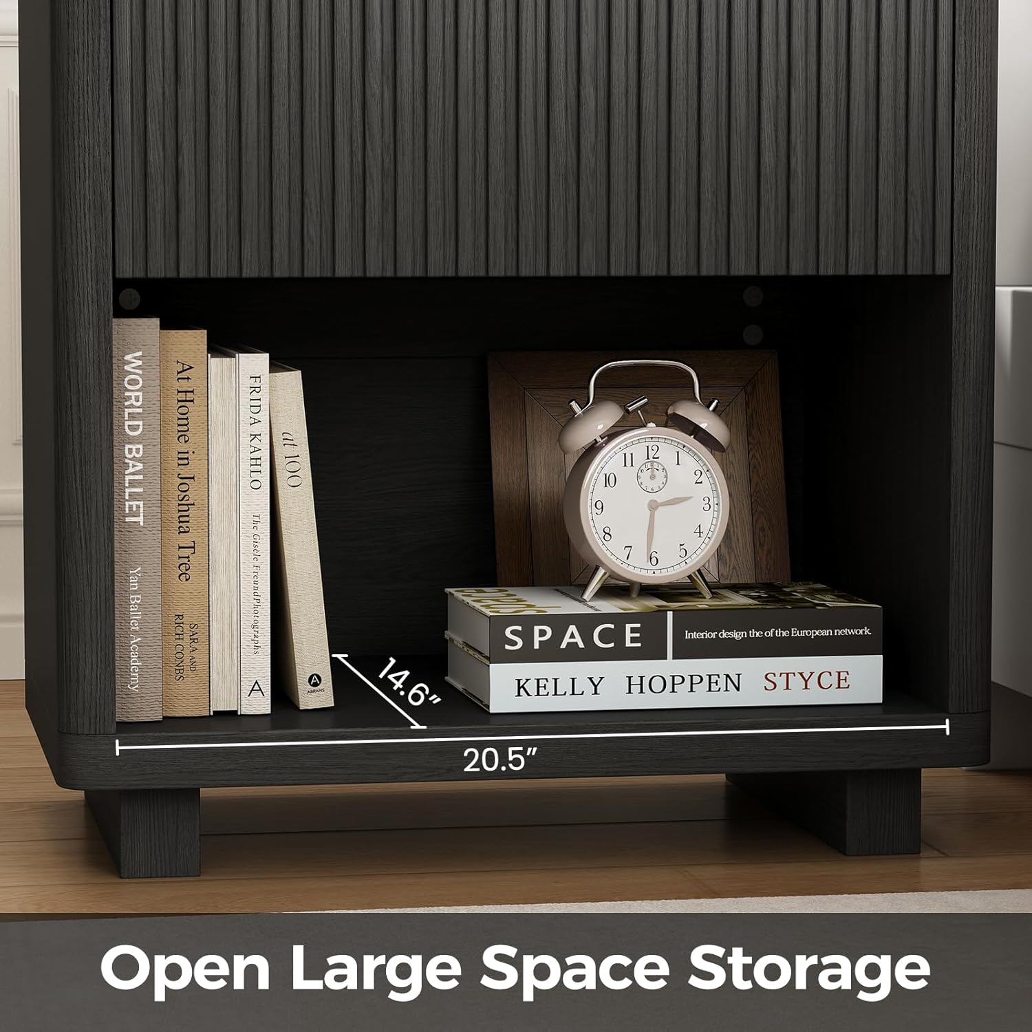 Spacious Storage with Drawers Storage Shelf: Featuring large drawers and Storage Shelf, this bedroom side table keeps your essentials organized—store books, glasses, electronics, or daily items with ease. Say goodbye to clutter and hello to organized living