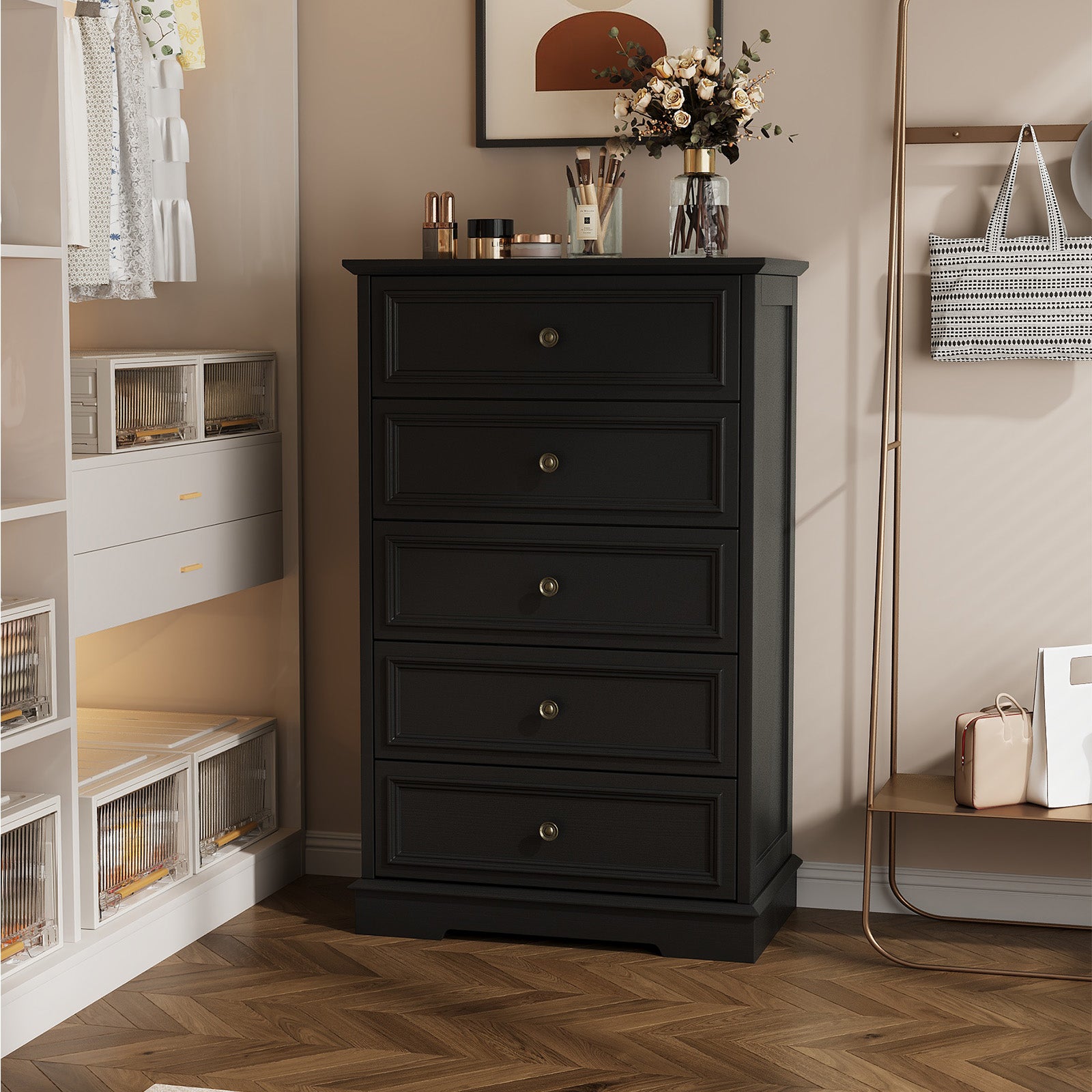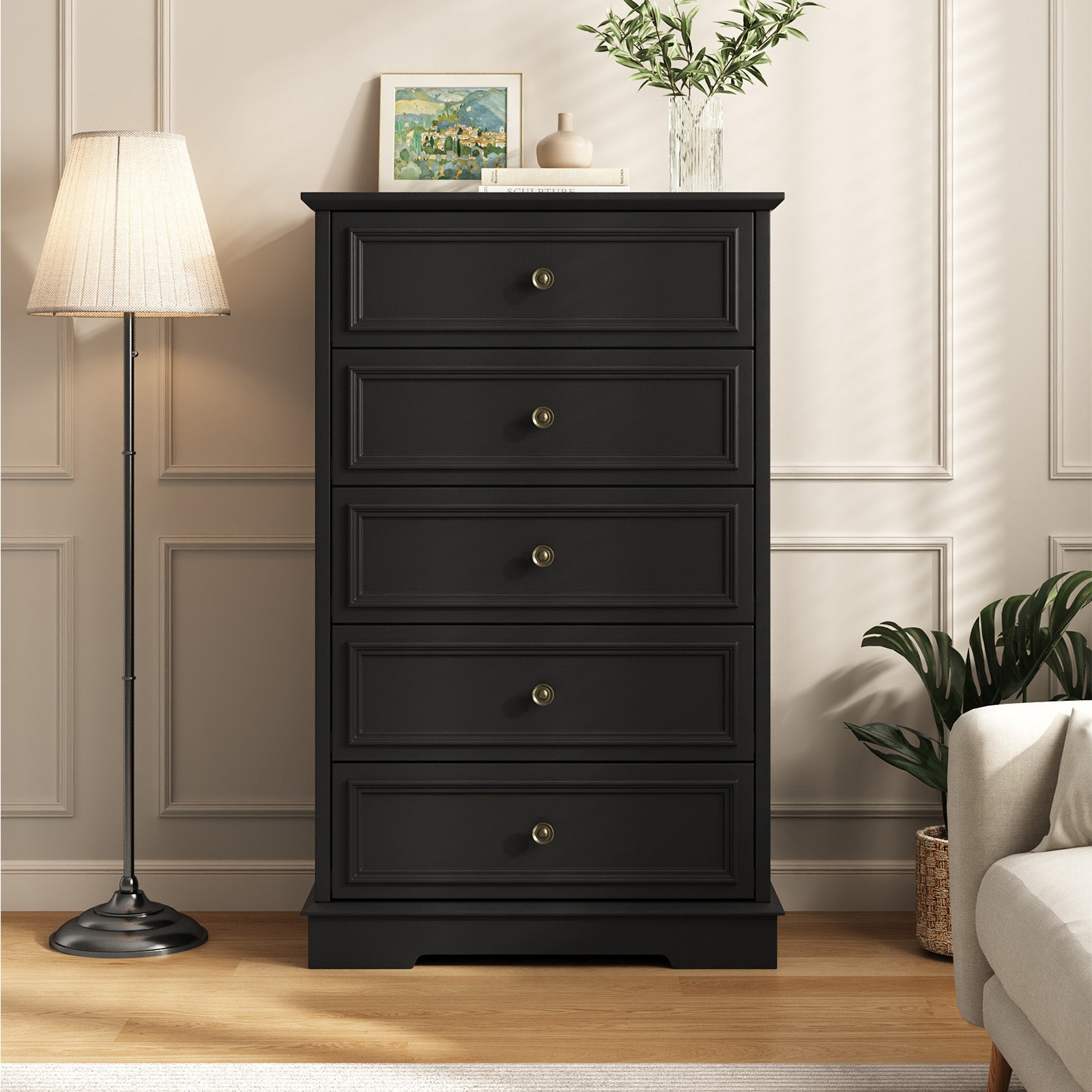 NEGYLIM 5 Drawer Dresser, Chest of Drawers for Bedroom, Modern Storage Cabinet Dresser Organizer Unit with Antique Bronze Round Handles for Living Room, Closet, Hallway, Entryway