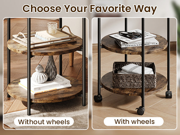 【High Size Adaptability】 With a diameter of 16.93 inches, it can be placed anywhere—used as a side table next to the sofa in the living room, a storage unit beside the bed in the bedroom, or a small storage cart in the kitchen.