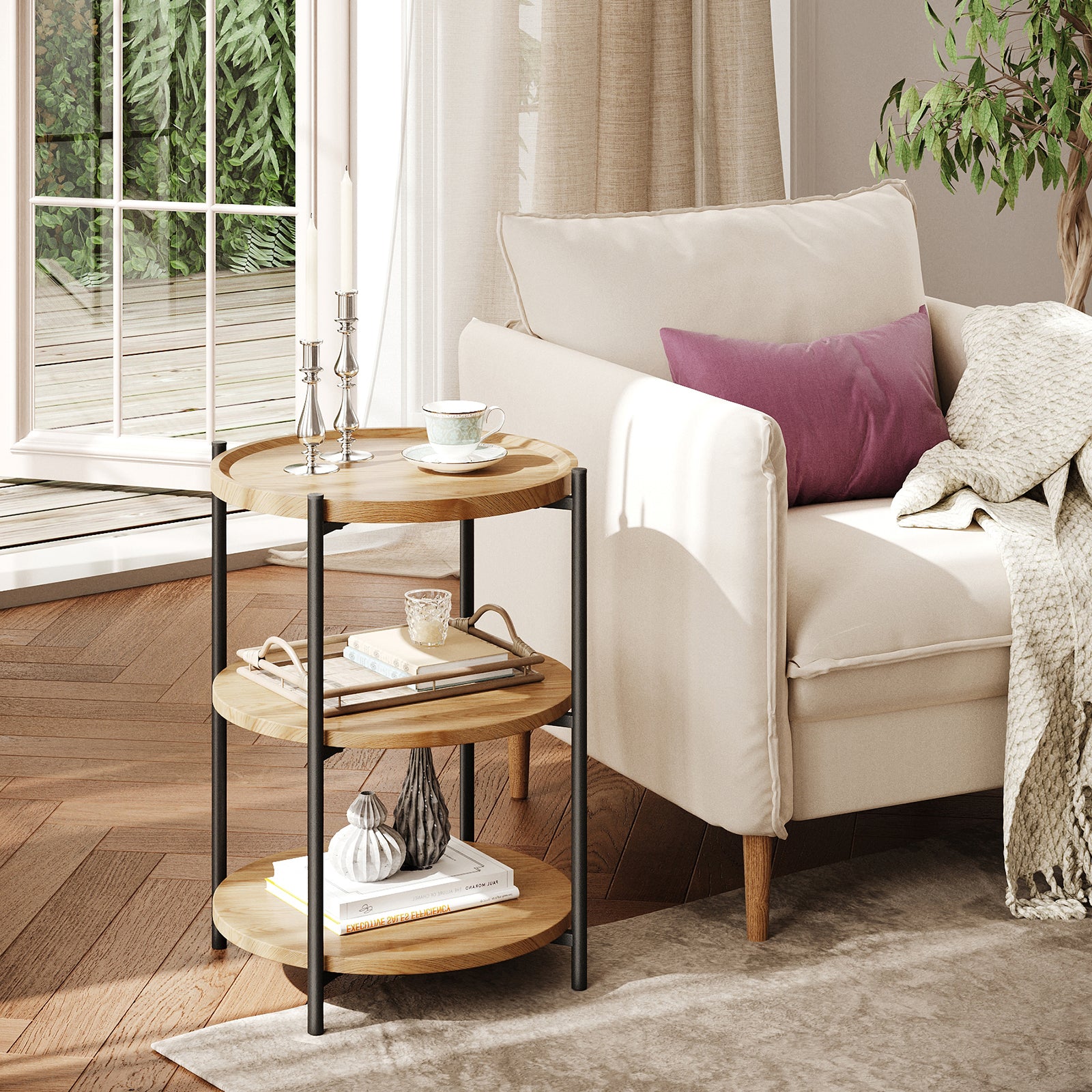 NEGYLIM End Side Table,Round Sofa Table with Metal Frame, 3-Tier Coffee Table Nightstand for Bedroom, Living Room, Nursery