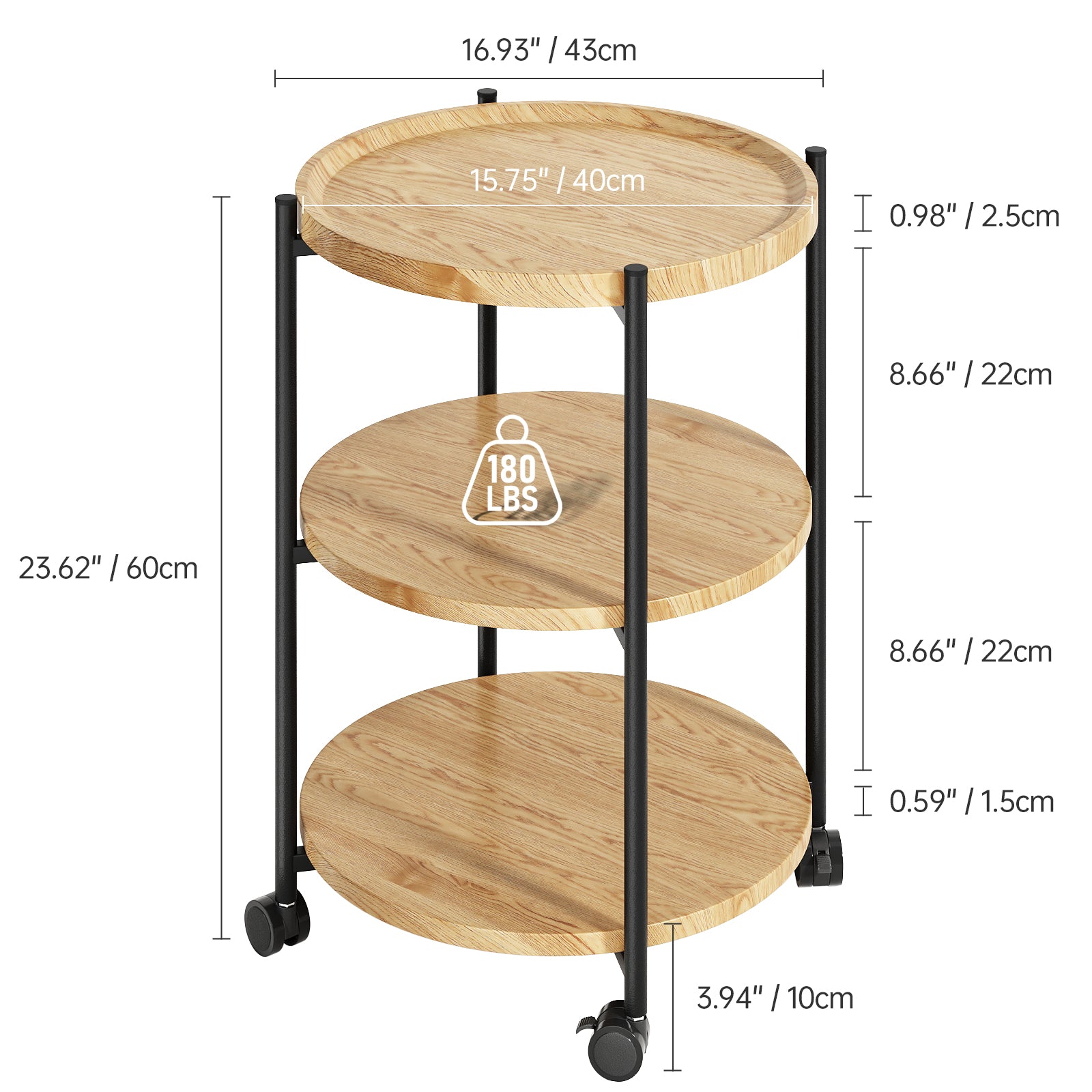 【High Size Adaptability】 With a diameter of 16.93 inches, it can be placed anywhere—used as a side table next to the sofa in the living room, a storage unit beside the bed in the bedroom, or a small storage cart in the kitchen.