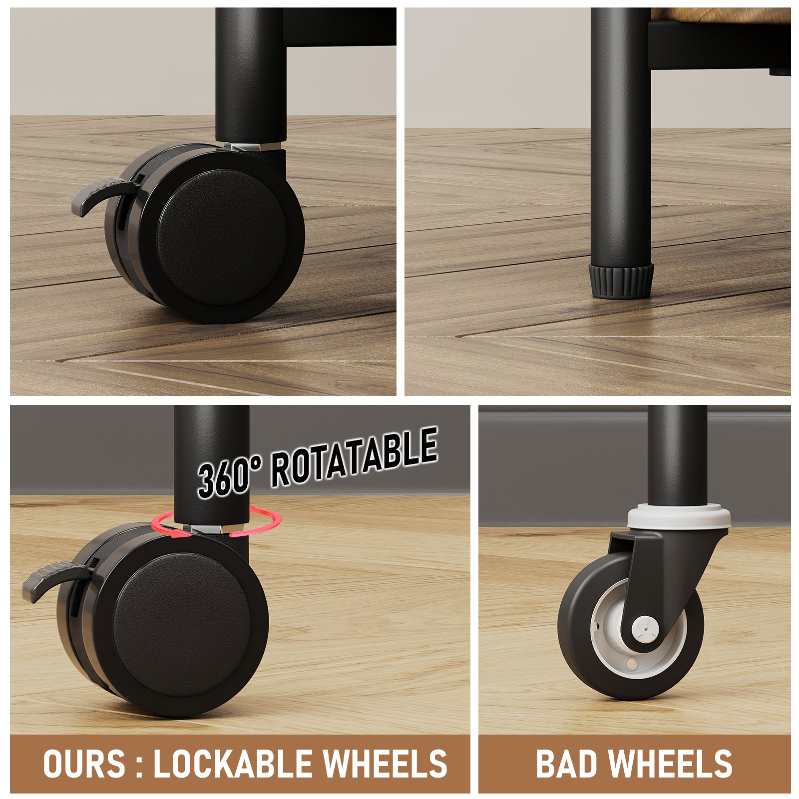 【4 Wheels for Free Movement & Flexible Placement】 Equipped with universal wheels (which can be replaced with fixed foot plugs), it can be easily moved and parked flexibly. Whether you want to push it to the living room for binge-watching, the bedroom for bedtime reading, or the kitchen for temporary storage, it unlocks a variety of usage scenarios.
